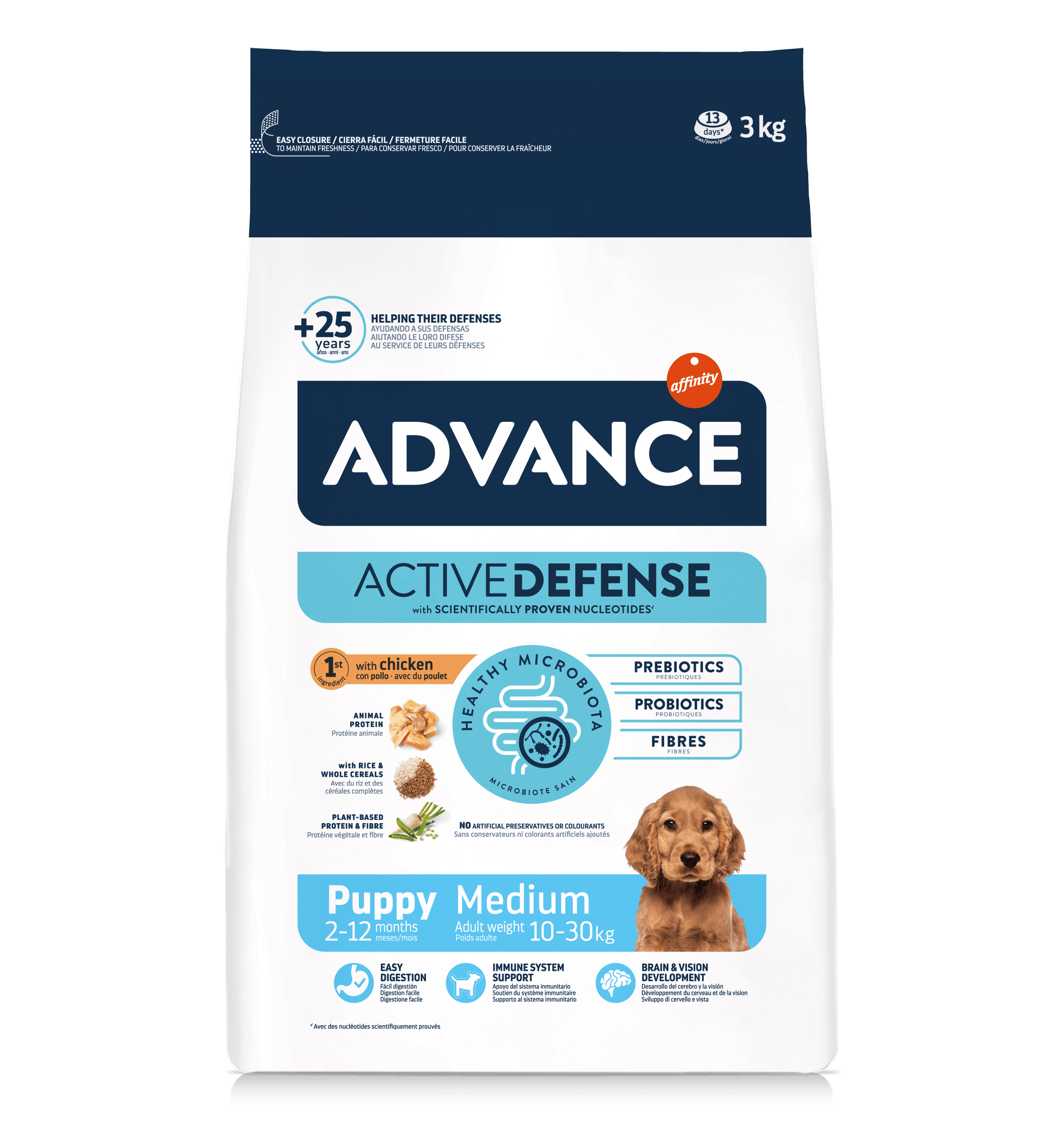 Hrană Super Premium, completă și echilibrată, special recomandată pentru cățelușii de talii medii (cu vârsta începând cu 2 până la 12 luni, de la 10 kg la până la 30 kg greutatea adultului) și femele gestante sau cu lactație.