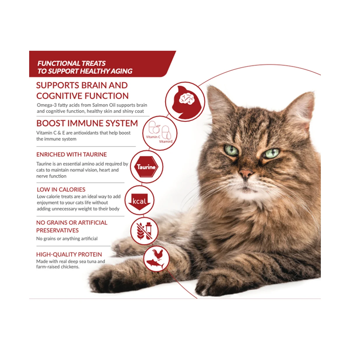 Sustine vederea, functia cardiaca si sanatatea nervoasa la pisicile mature.
