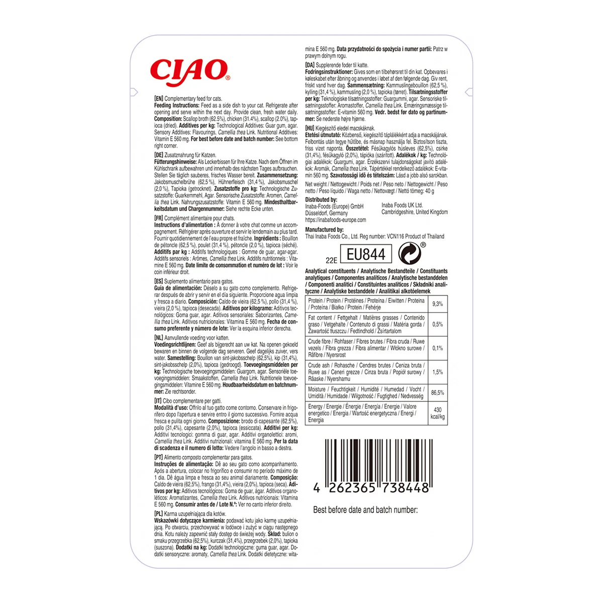 Compozitie: supa de scoici (62,5%), pui (31,4%), scoici (2,0%), tapioca (uscata)