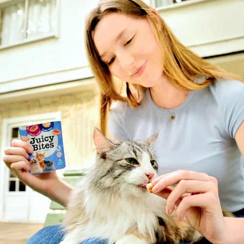 Aceste gustari fragede, de marimea unei muscaturi, pot fi hranite cu mana pentru a promova interactiunea cu pisicuta ta. Puteti pune o pastila intr-una dintre gustari pentru a ajuta la deghizarea medicamentelor sau o puteti folosi pentru antrenament.