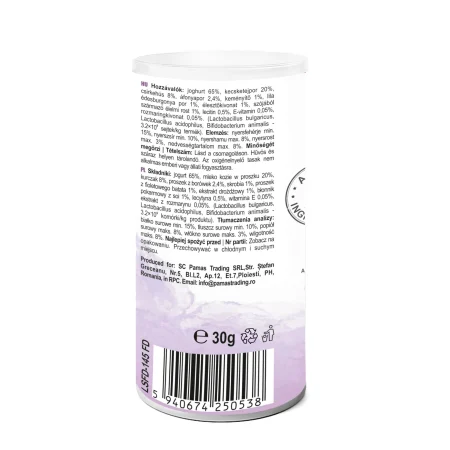 - Ajuta flora intestinala – iaurtul si extractul de drojdie contribuie la mentinerea unui echilibru sanatos al bacteriilor benefice din intestin.